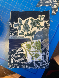 On Friday, I did another quick scrappy postcard piece, and prepped another floral appliqué piece that I didn't end up using (yet).