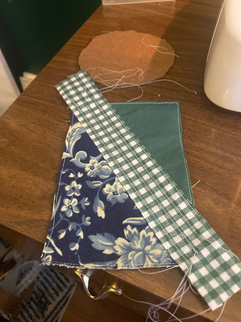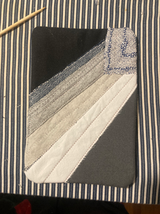 I enjoyed the little scrappy postcard process from Sunday, but I didn't love the look of the edge finishing. I decided to do another one and sew it to a backing so the edges would be encased. That worked, but because I'm using denim as the base layer it ended up more rounded than I had intended.